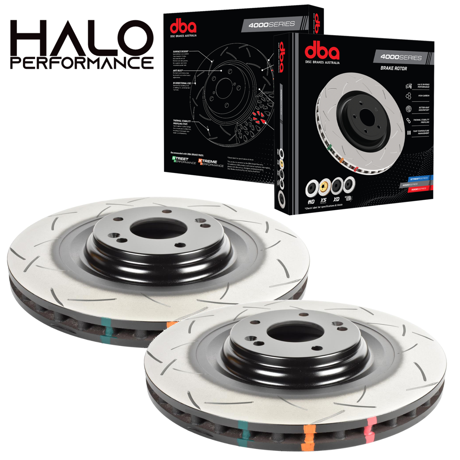 The DBA 4000 series brake discs with the T3 slotting feature 48 slots precision cnc machined to give plenty of brake pad degassing points, secondly they are manufactured from a high carbon cast iron alloy, a material much more resistant to fatigue under high temperature conditions, to help prevent cracking the 4000 series also undergo heat treatment to alleviate manufacturing stresses this also prolongs the life of the brake discs this is known as TSP (Thermal Stability Profiling).